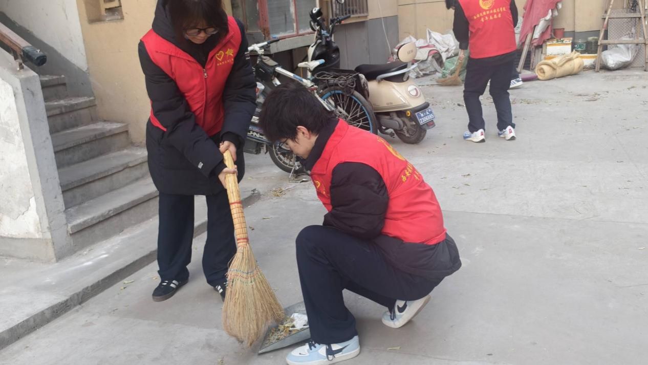 从主干道的落叶灰尘到墙角的杂物碎屑,从绿化带中的白色垃圾到单元门口的果皮纸屑,志愿者们弯腰俯身,不放过任何一处脏乱。姚老师始终与志愿者们并肩作战,时而示范清扫技巧,时而协助搬运装满垃圾的袋子,用实际行动诠释着榜样的力量。清扫过程中,居民们纷纷驻足点赞,现场涌动着邻里互助的温暖气息。