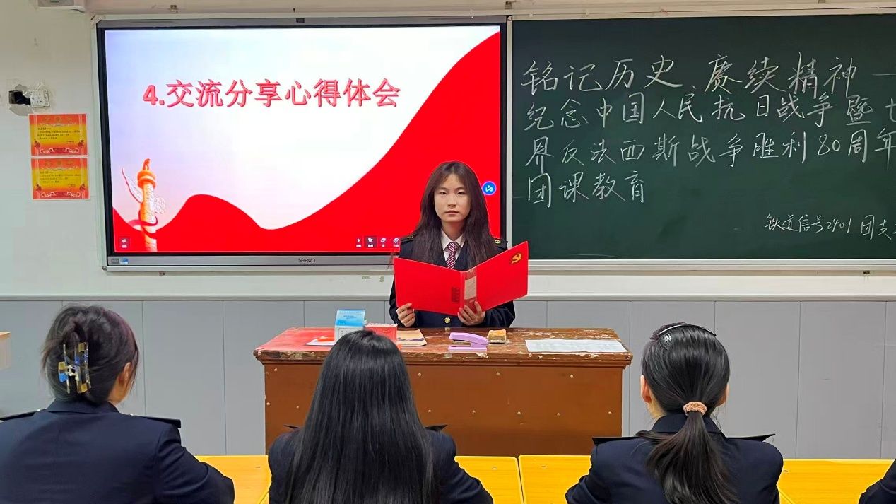 浴血奋战迎胜利,和平曙光耀中华。为纪念中国人民抗日战争暨世界反法西斯战争胜利80周年,传承伟大抗战精神,捍卫和平成果,以责任立身的时代伟力,凝聚新时代青年的磅礴力量。电子信息学院铁道信号2401班于2025年9月15日组织开展“铭记抗战伟绩,续写时代华章”主题团课,学生团员代表积极参与。