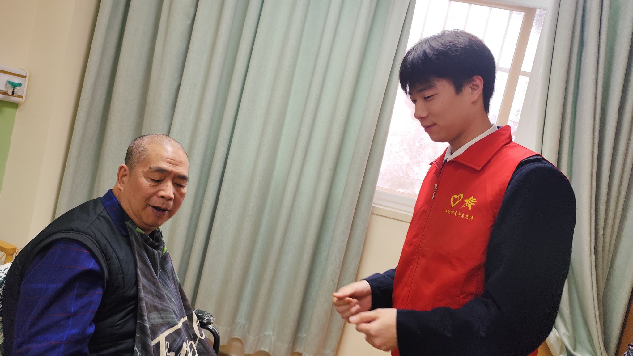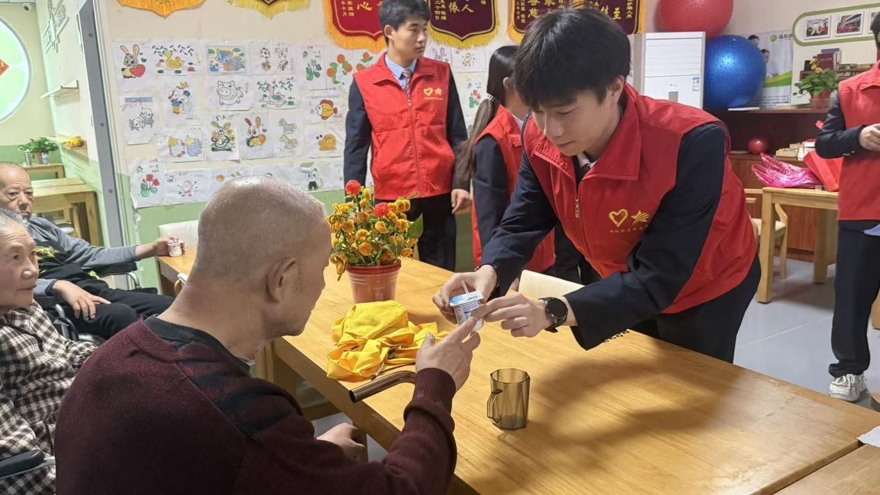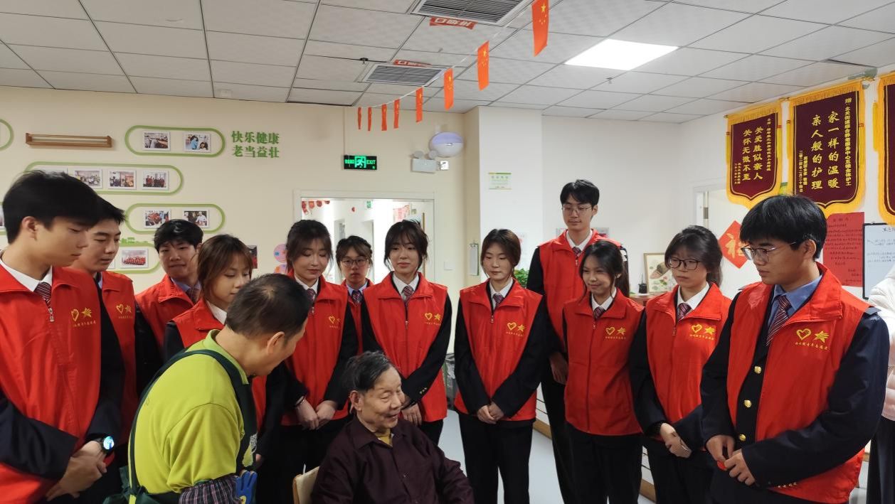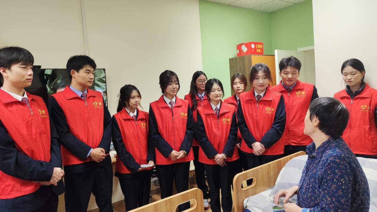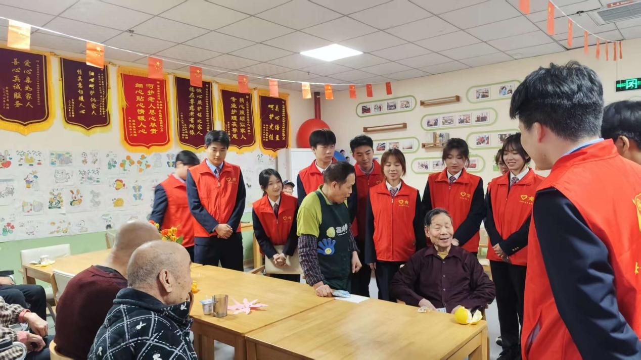 随后,精彩的节目表演正式拉开帷幕。李思卓同学带来歌曲《父亲》,深情的旋律与真挚的演唱,打动了现场每一位老人;舞蹈节目《桃花朵朵开》活力满满,志愿者们用灵动的舞姿传递着青春与快乐;孙靖淳同学演唱的《日不落》节奏明快,老人们也跟着旋律轻轻哼唱,现场氛围愈发热烈。