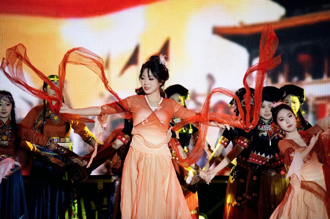 由电子信息学院精心准备的民族舞《祈·舞》将晚会推向了一个小高潮。节目融合了苗族、藏族、傣族、彝族等多个民族的舞蹈元素,展示了各民族独特的文化风情。多元文化在舞台上相互交融,碰撞出绚丽的火花,让观众们领略到了中华民族文化的博大精深和丰富多彩。