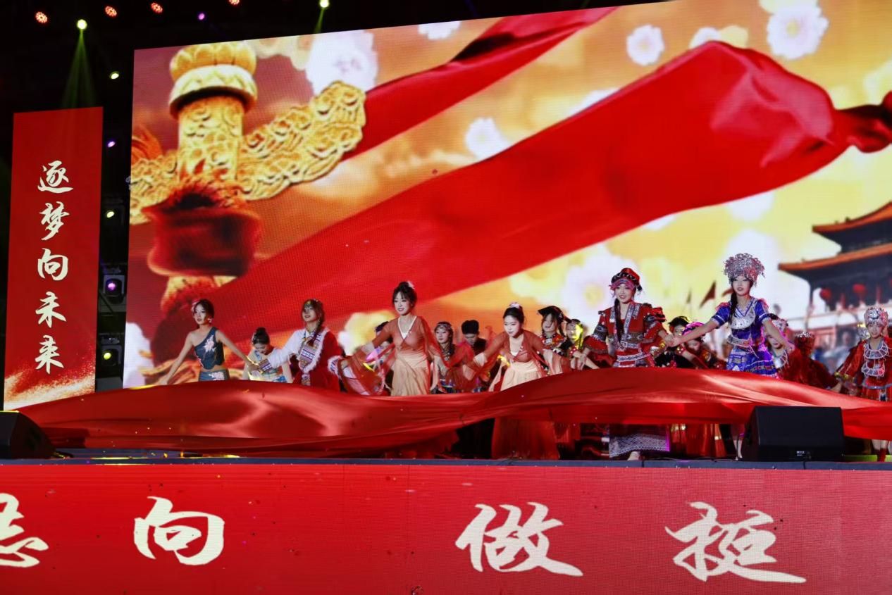 大学生艺术团带来的舞蹈《我们都是追梦人》为晚会画上了圆满的句号。晚会现场气氛热烈,掌声、欢呼声不断。