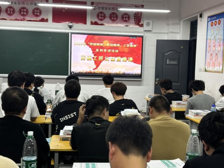 9月16日,学院组织全体学生集中观看"劳模精神、劳动精神、工匠精神"系列主题直播活动。活动特别强调劳动价值观塑造与职业素养培育,通过直播后的分组研讨,促进学生将精神感悟转化为专业技能提升的实际行动,为培养高素质技术技能人才奠定思想基础。