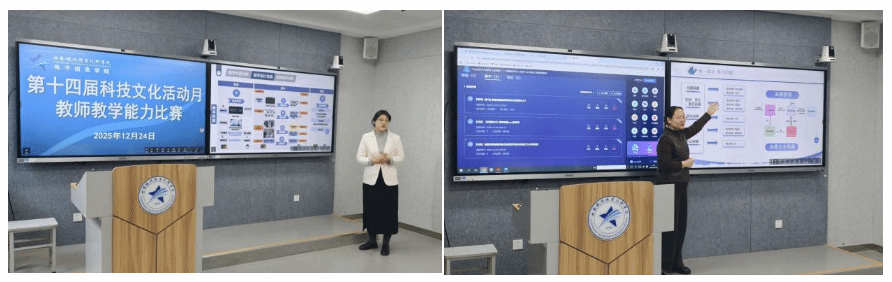 教师教学能力比赛同步开展,聚焦近三年新入职的17名教师,以现场讲授、无学生教学展示为主要形式,展现教学重难点突破、思政元素融入、数字化教学手段应用等核心能力,助力年轻教师教学能力提升。