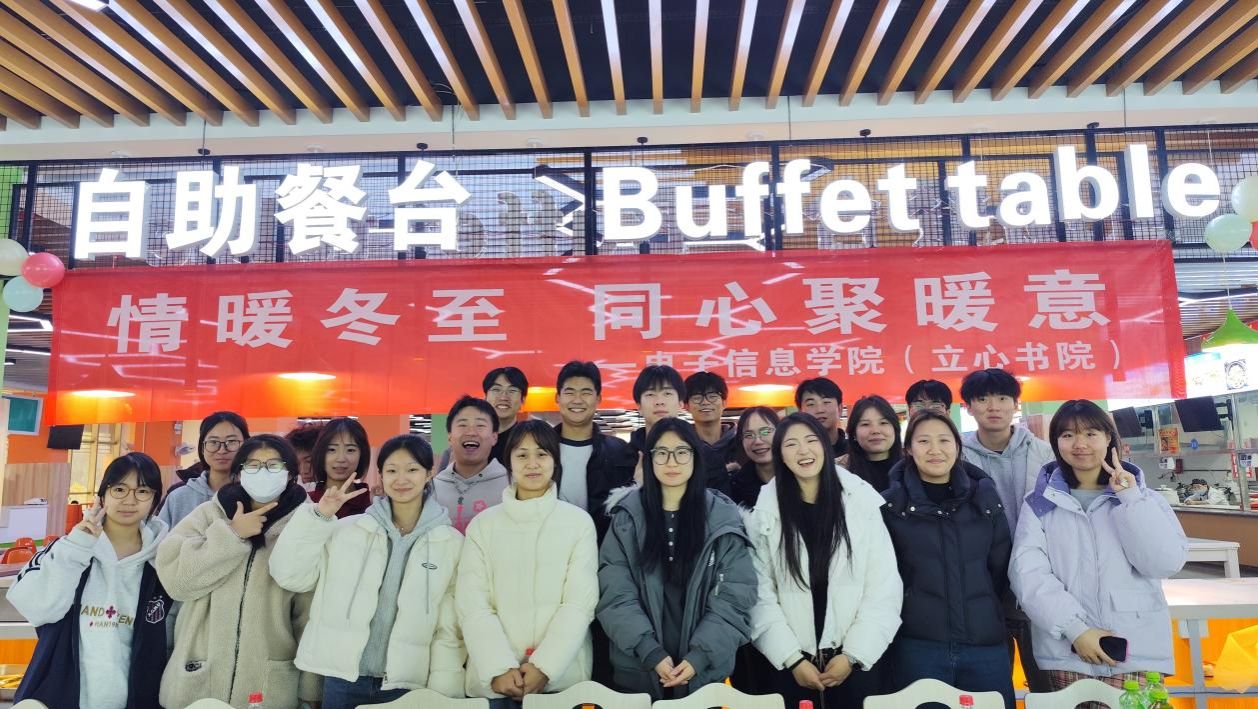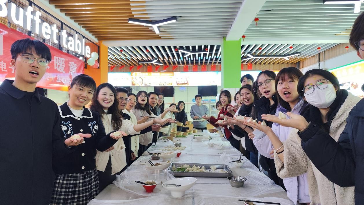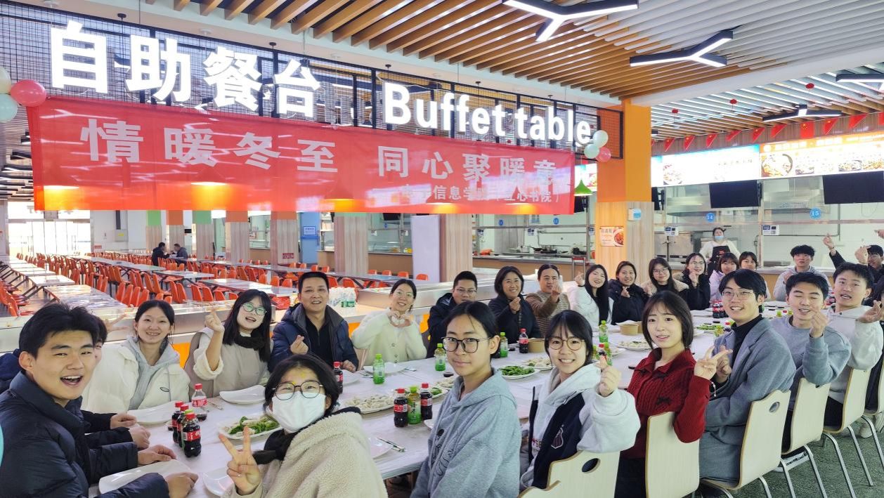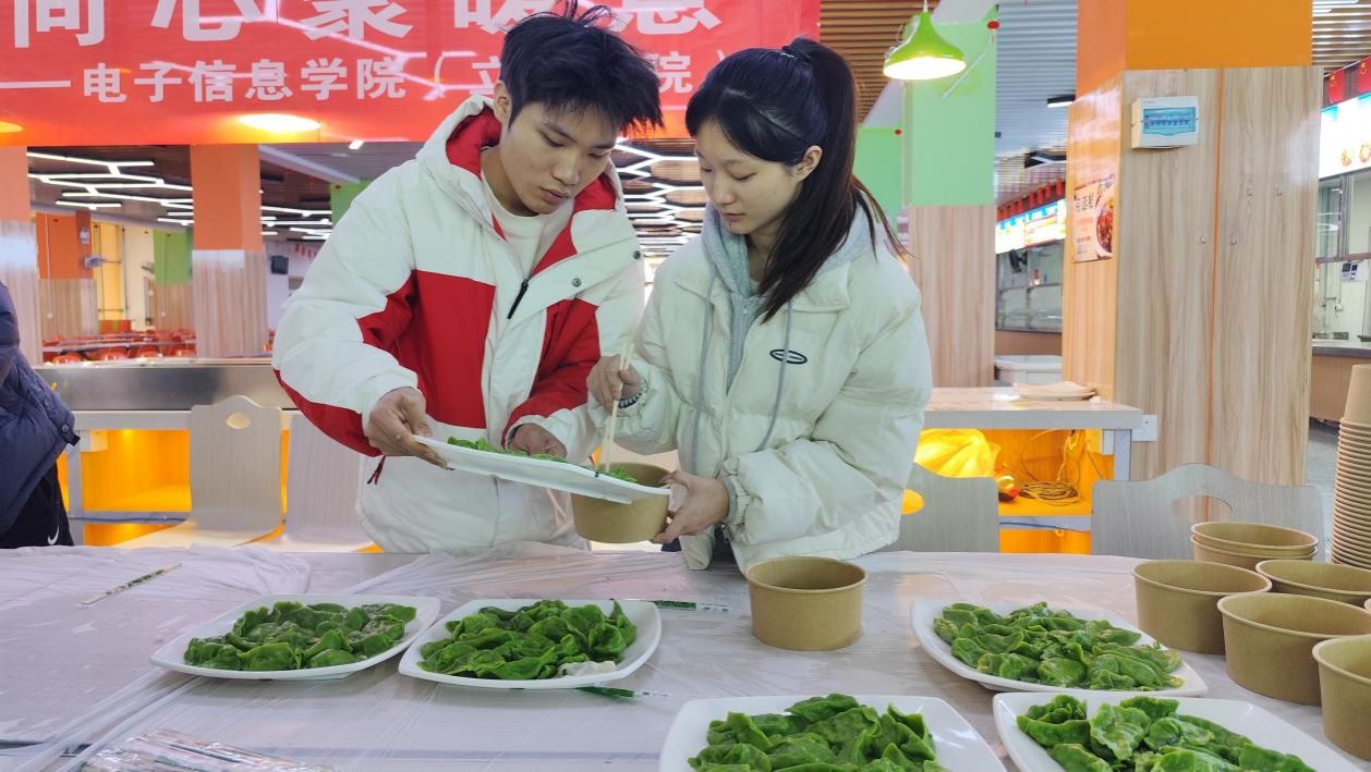 冬至,是中国传统二十四节气之一,也是凝聚温情的重要节日。为弘扬中华优秀传统文化,营造温馨和谐的校园氛围,进一步推动“四进两联一交友”工作走深走实,12月19日上午,电子信息学院团总支于食堂二楼组织开展了“情暖冬至 同心聚暖意”冬至日主题活动。电子信息学院党总支书记仵崇智,党总支副书记薛明,学工办胡士亮老师,全体辅导员、班主任老师参加活动,师生齐聚一堂,亲手包饺子、话习俗、享温暖,在热气腾腾的烟火气中共迎冬至。