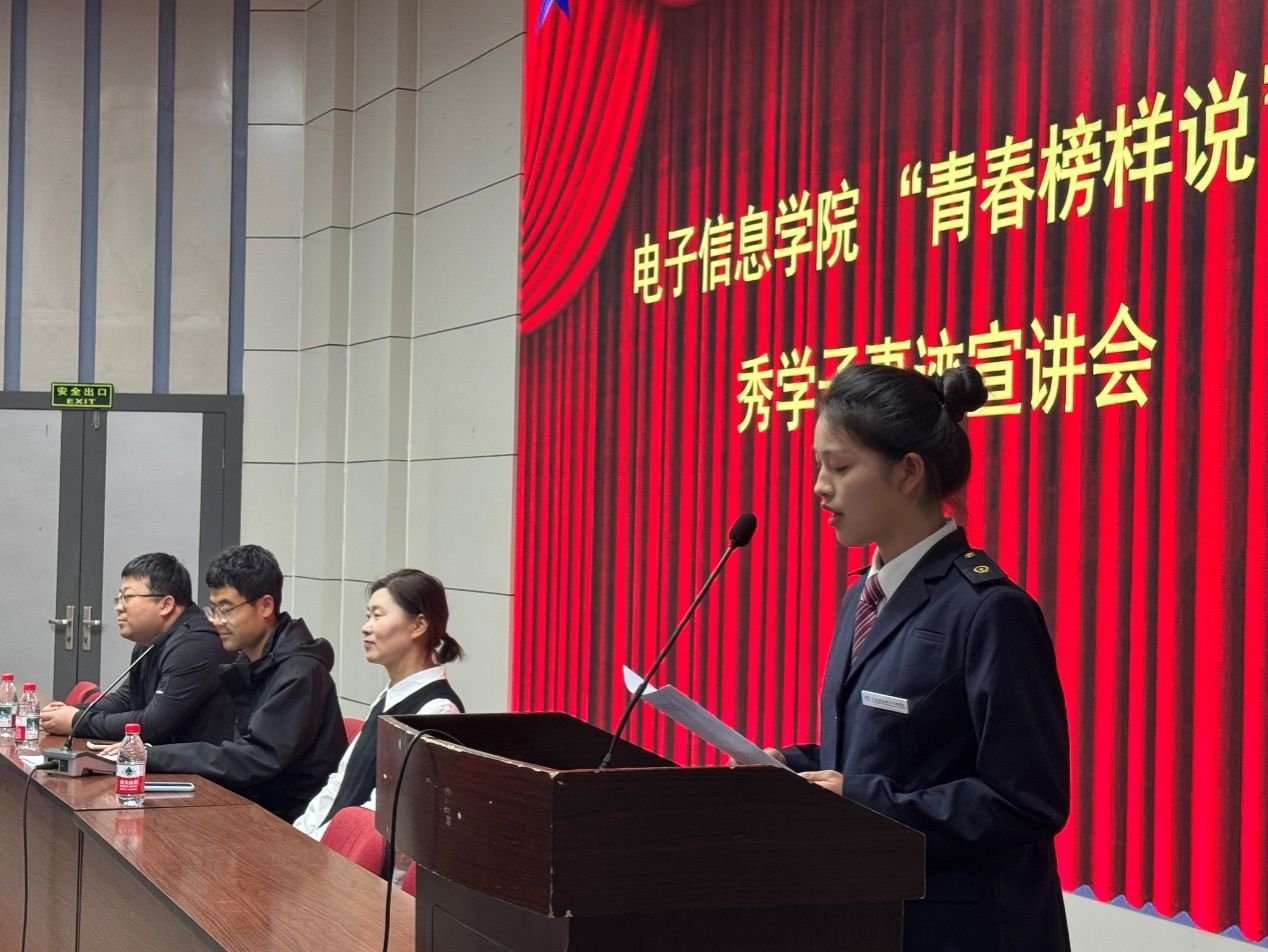 青春榜样,逐梦前行。“青春榜样说”优秀学子事迹宣讲会既是一次思想的碰撞,更是一次奋进的动员。相信同学们将以三位榜样同学为标杆,脚踏实地、奋勇争先,把榜样的力量转化为实际行动,把青春的梦想融入时代洪流,共同营造电子信息学院勤学善思、比学赶超的良好氛围,用实际行动书写青春华章!